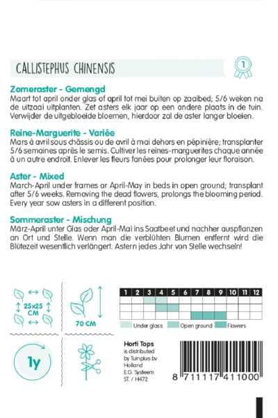 Callistephus chinensis, Margarétka, Astra zmes farieb jednoduchý kvet cca 1 g semien
