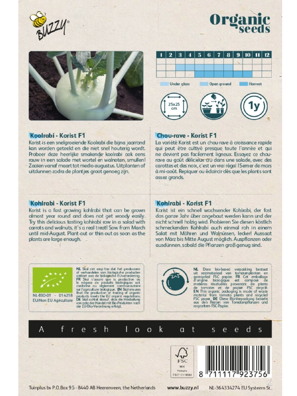 Korist je rýchlo rastúca odroda kalerábu, ktorú možno pestovať takmer celoročne a ktorá ľahko nezdrevnatie. Vyskúšajte tento lahodný kaleráb surový v šaláte s mrkvou a vlašskými orechmi – skutočná lahôdka! Sejte od marca do polovice augusta. Presádzajte alebo prerieďte, hneď ako rastliny dostatočne vyrastú.